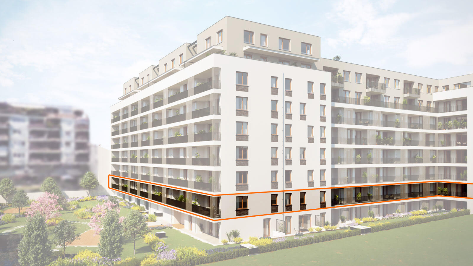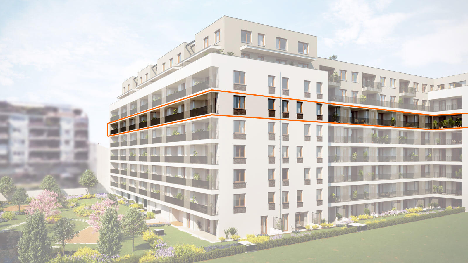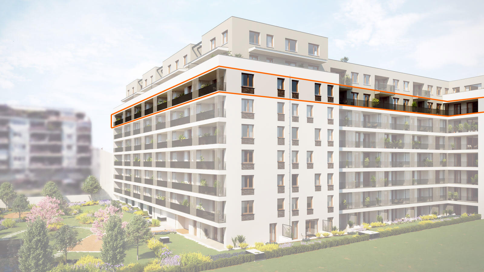 Mivel a lakásokból több belső parkra is kilátás nyílik, így kiemelten fontos volt számunkra, hogy közel hozzuk a természetet és a zöld felületek látványa a lakásokból elérhetővé váljon. Az épületen található nagyméretű ablakok és erkélyajtók a szobákba is beengedik a belső parkok zöld növényeinek látványát.
