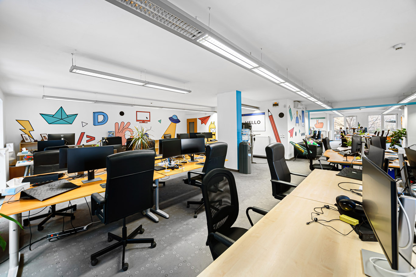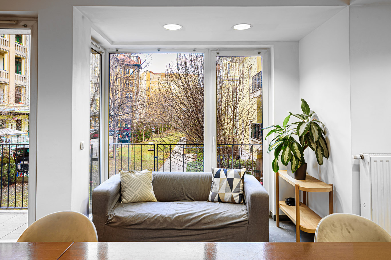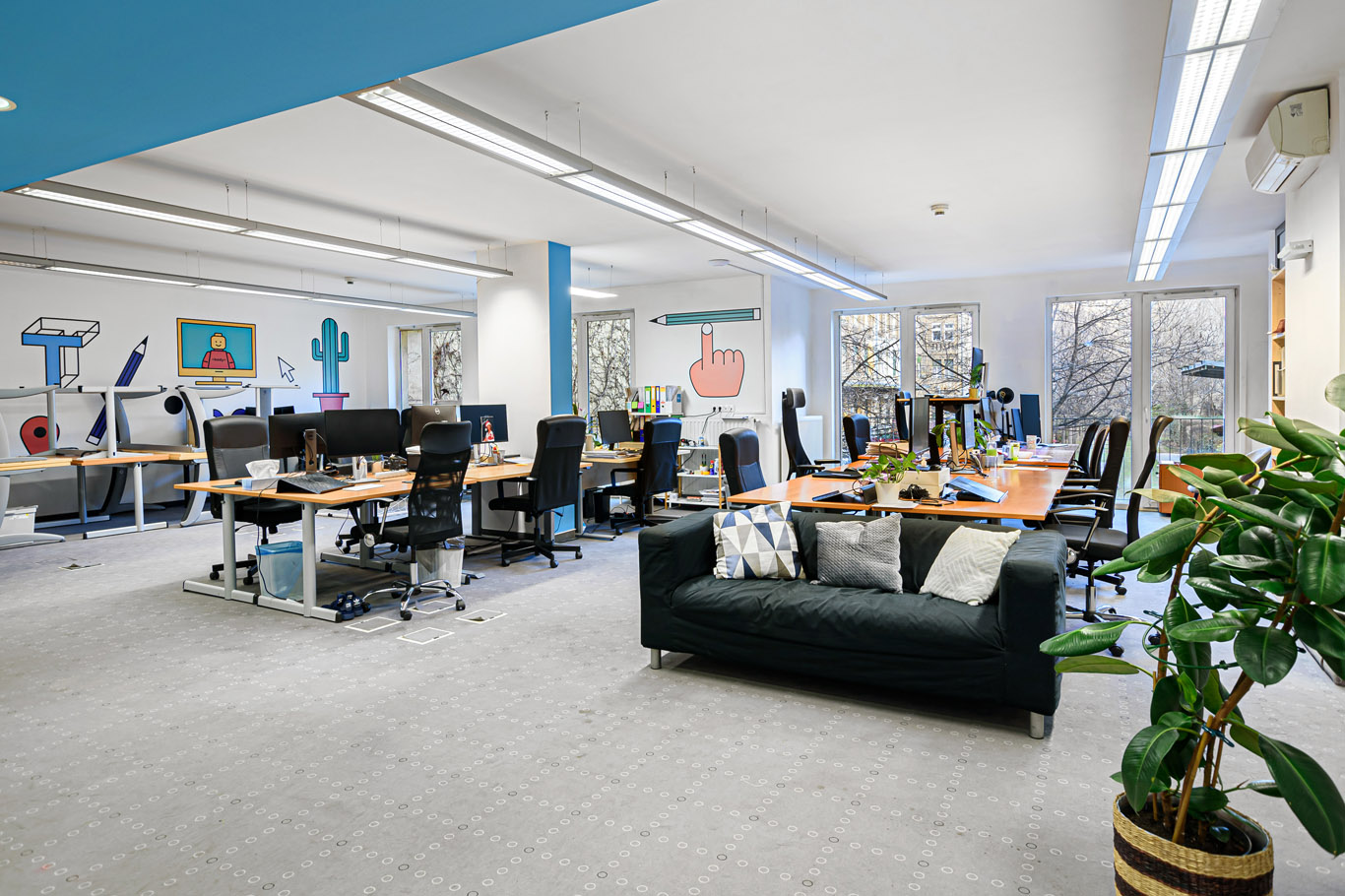 • rendkívül nyugodt munkakörnyezet: részben egy csendes utcára részben egy kellemes belső udvarra néz