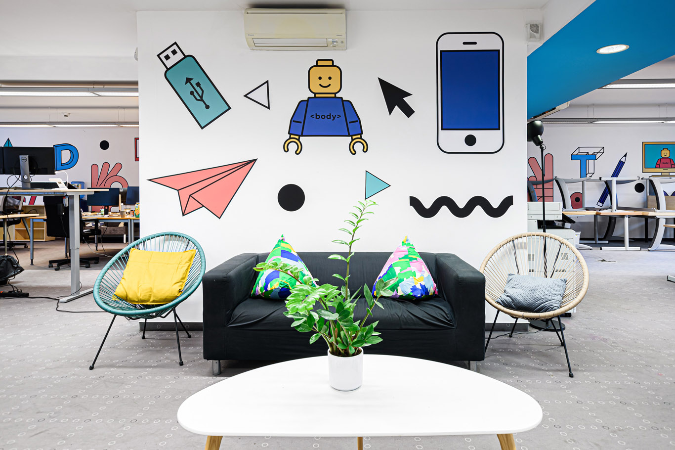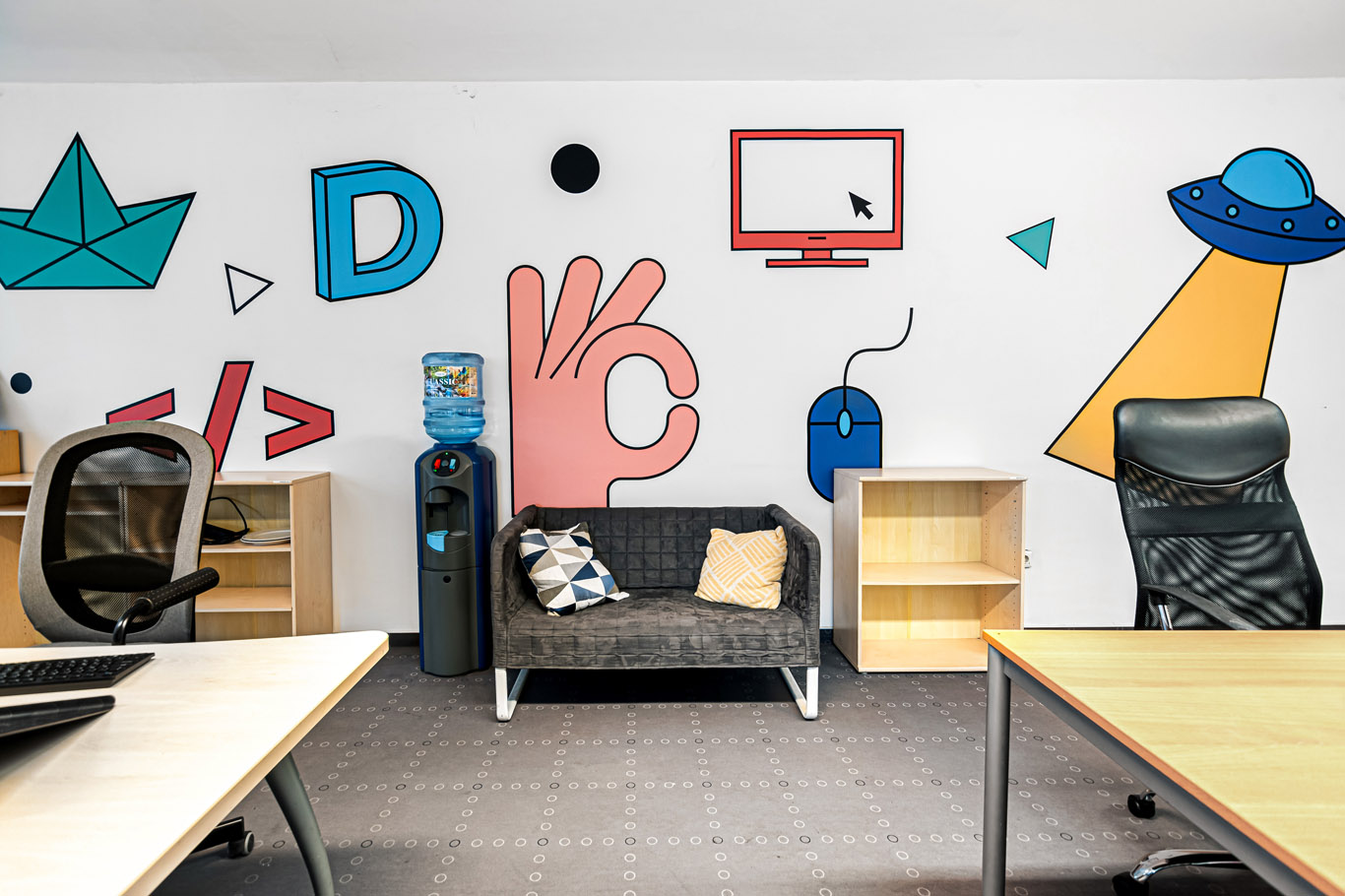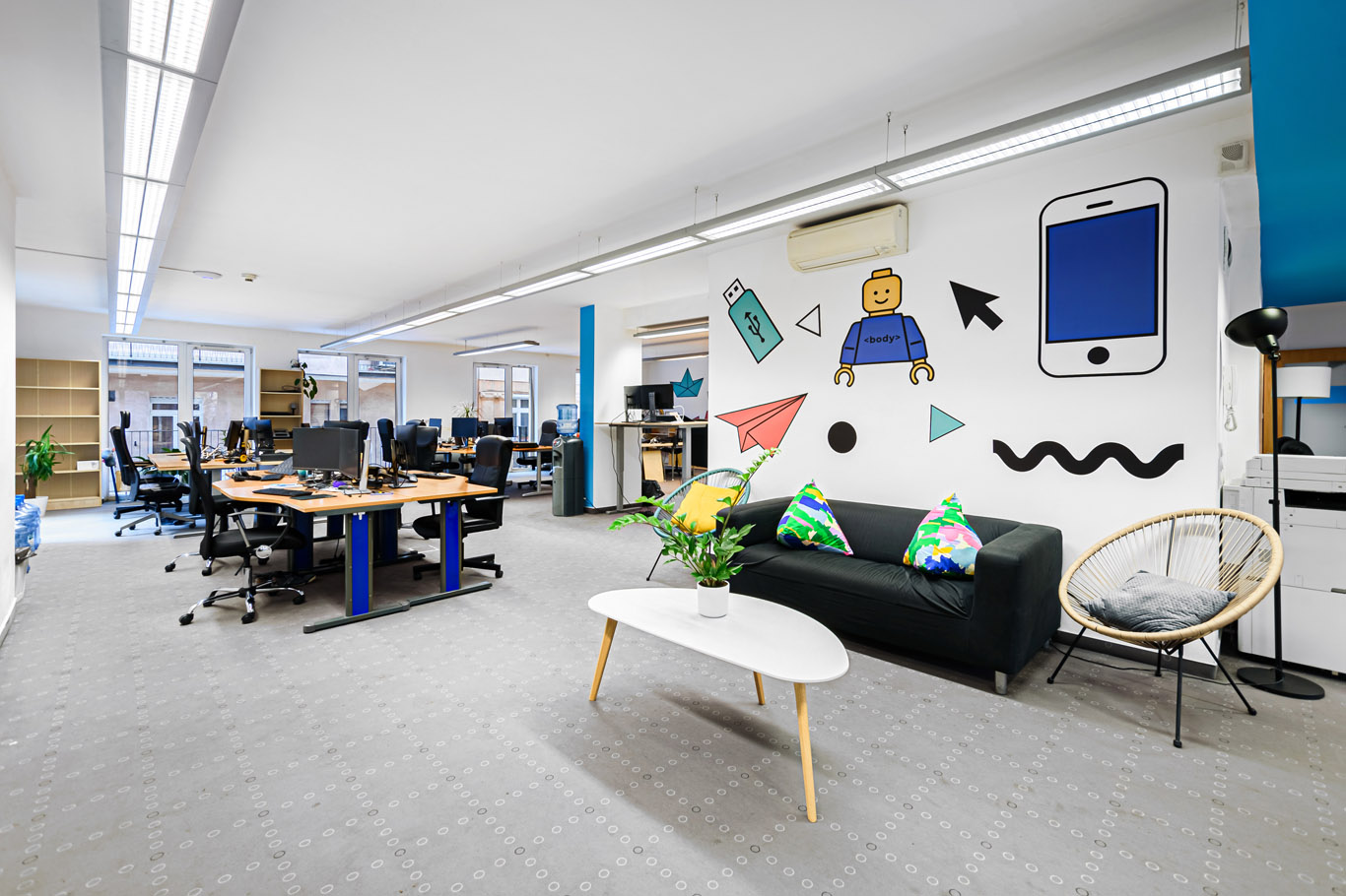 • rendkívül nyugodt munkakörnyezet: részben egy csendes utcára részben egy kellemes belső udvarra néz